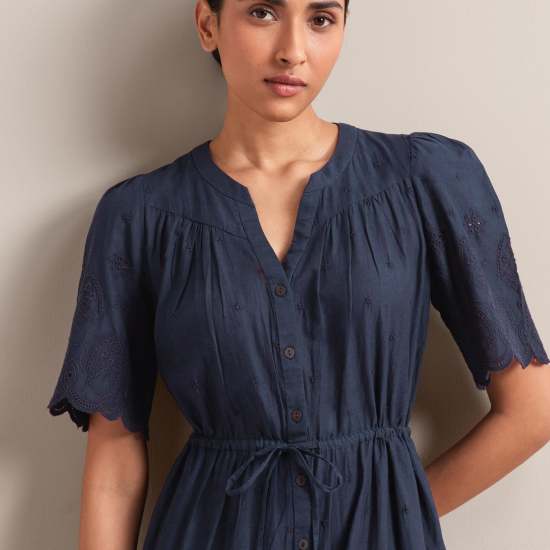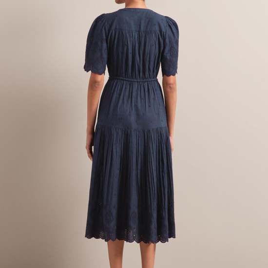 Our new Nicole dress is cut from a cool organic cotton with delicate broderie anglais detail;making it ideal for summer days. Featuring discreet side pockets;pretty scallop hems and a drawstring waist that you can wear loose or cinched for a more defined look. This is the perfect dress for feeling pulled together while staying cool on warmer days whether you’re at a summer party or wandering round a farmer's market.