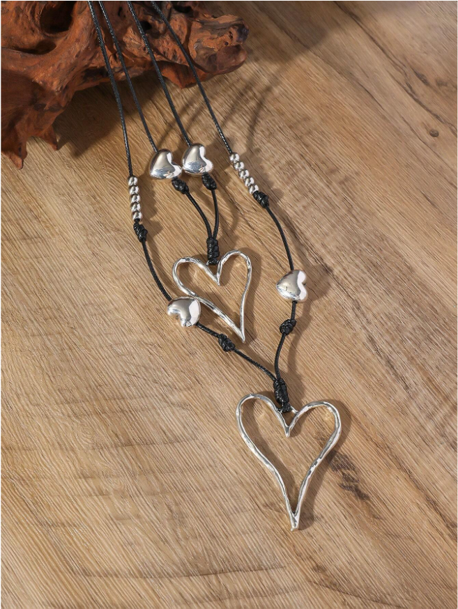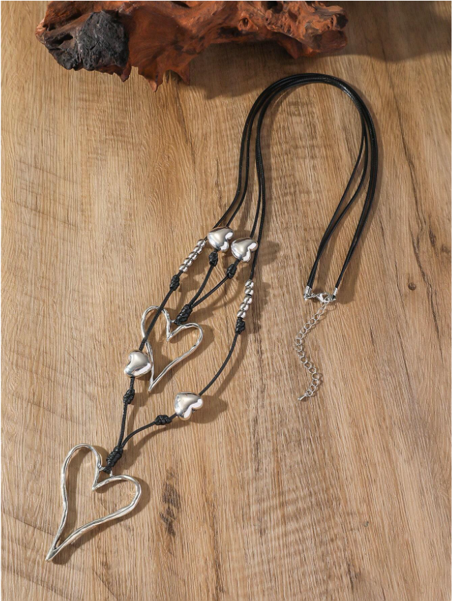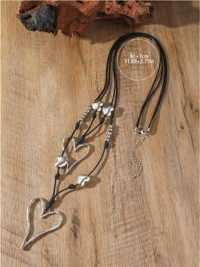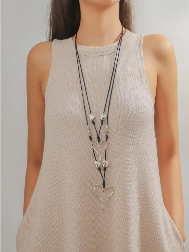 • Double Layer Alloy Heart Shaped Long Necklace