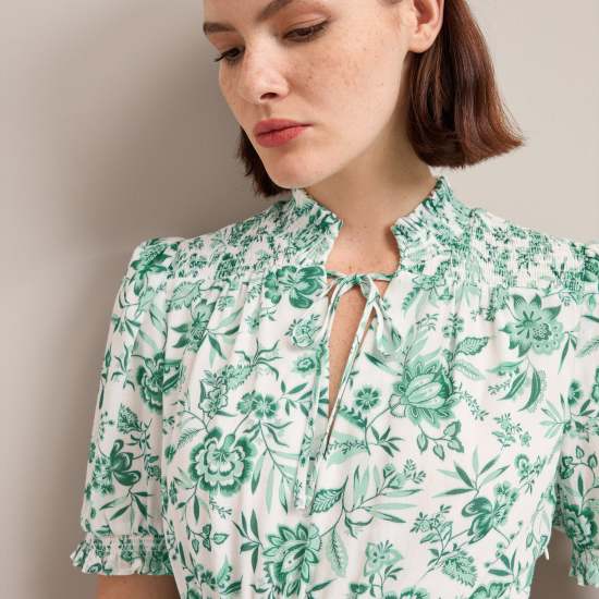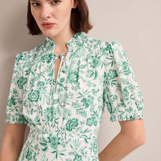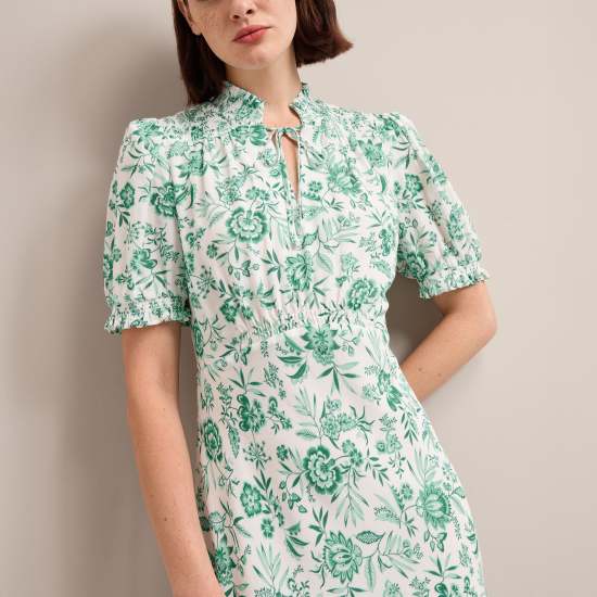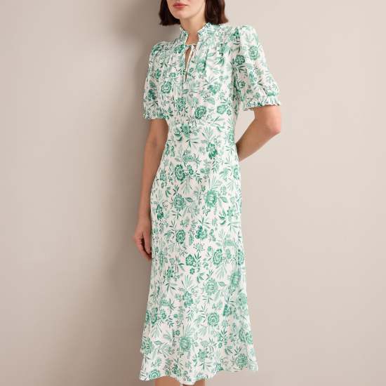 With its figure-flattering silhouette;it’s little surprise that our Irina dress has been a sell-out season after season. Back for Summer 25;the winning formula of its bias-cut skirt;pretty shirring and tie-neck (which can be worn open or closed) remain. What’s new is the slightly shorter length for daytime wearability and two timeless floral prints designed in a beautifully light and drapey cotton viscose georgette that’s a joy to wear on warmer days.